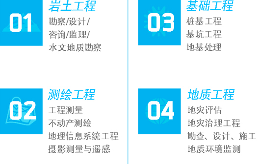 公司通過(guò)產(chǎn)業(yè)結(jié)構(gòu)調(diào)整、業(yè)務(wù)轉(zhuǎn)型升級(jí),實(shí)現(xiàn)跨越式發(fā)展,成為了集巖土工程勘察設(shè)計(jì)、測(cè)繪地理信息工程、地質(zhì)環(huán)境工程、基坑與樁基礎(chǔ)工程四大主業(yè)于一體的綜合性工程技術(shù)公司。作為湖北省工程勘察和基礎(chǔ)施工行業(yè)的排頭兵,現(xiàn)主要從事巖土工程勘察、設(shè)計(jì)、測(cè)試、檢測(cè)、監(jiān)測(cè),工程測(cè)量,不動(dòng)產(chǎn)測(cè)繪,地理信息系統(tǒng)工程,攝影測(cè)量與遙感,地質(zhì)災(zāi)害危險(xiǎn)性評(píng)估與礦產(chǎn)壓覆評(píng)價(jià),地質(zhì)災(zāi)害治理工程勘查、設(shè)計(jì)、施工,城市綜合地質(zhì)調(diào)查,樁基礎(chǔ)工程施工及基坑工程施工,不動(dòng)產(chǎn)登記代理、咨詢工作及軟件工程開(kāi)發(fā)。