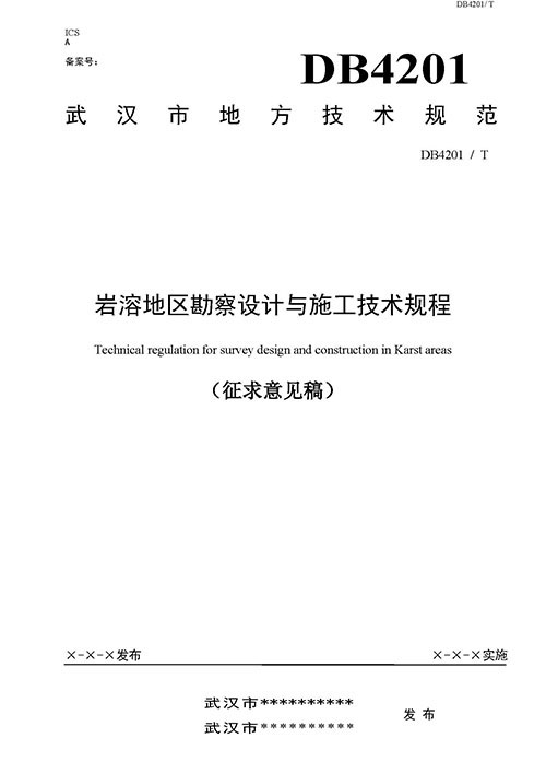 根據《市質監局關于下達2018年度武漢市地方標準制修訂項目計劃的通知綜合管理類(第二批)》(武質技監標[2018]5號)的要求,由武漢市勘察設計有限公司聯合相關單位共同起草的武漢市地方標準《巖溶區勘察設計與施工技術規程》(附件1)已完成征求意見稿。按照有關規定,現征求貴單位意見。請將意見填入對應《征求意見反饋表》(附件2)并加蓋單位公章后,紙質版(或掃描件)于2019年07月20日前反饋給武漢市勘察設計有限公司,逾期不復函,視為無意見。