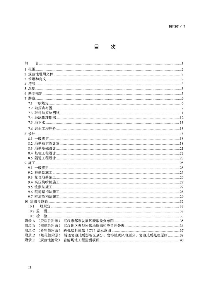 武漢市巖溶地區勘察、地基基礎設計與施工、監測與檢驗除應符合本規程的規定外,尚應符合國家、 省、市現行有關技術標準的規定。