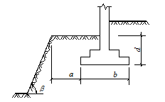 a ——基礎底面外邊緣線至坡頂的水平距離(m); b——垂直于坡頂邊緣線的基礎底面邊長(m); d——基礎埋置深度(m);
