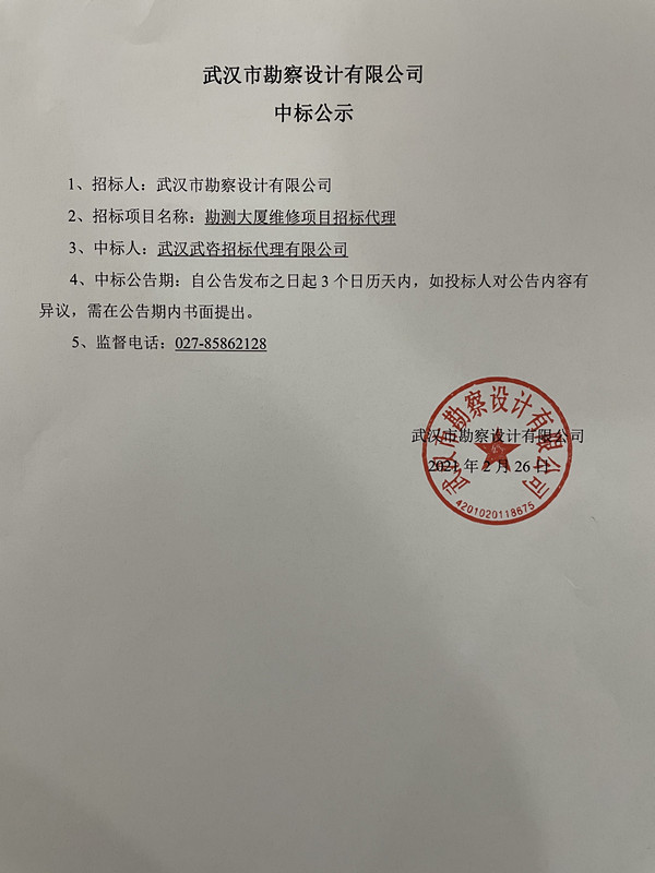 勘測大廈維修項(xiàng)目招標(biāo)代理中標(biāo)公示