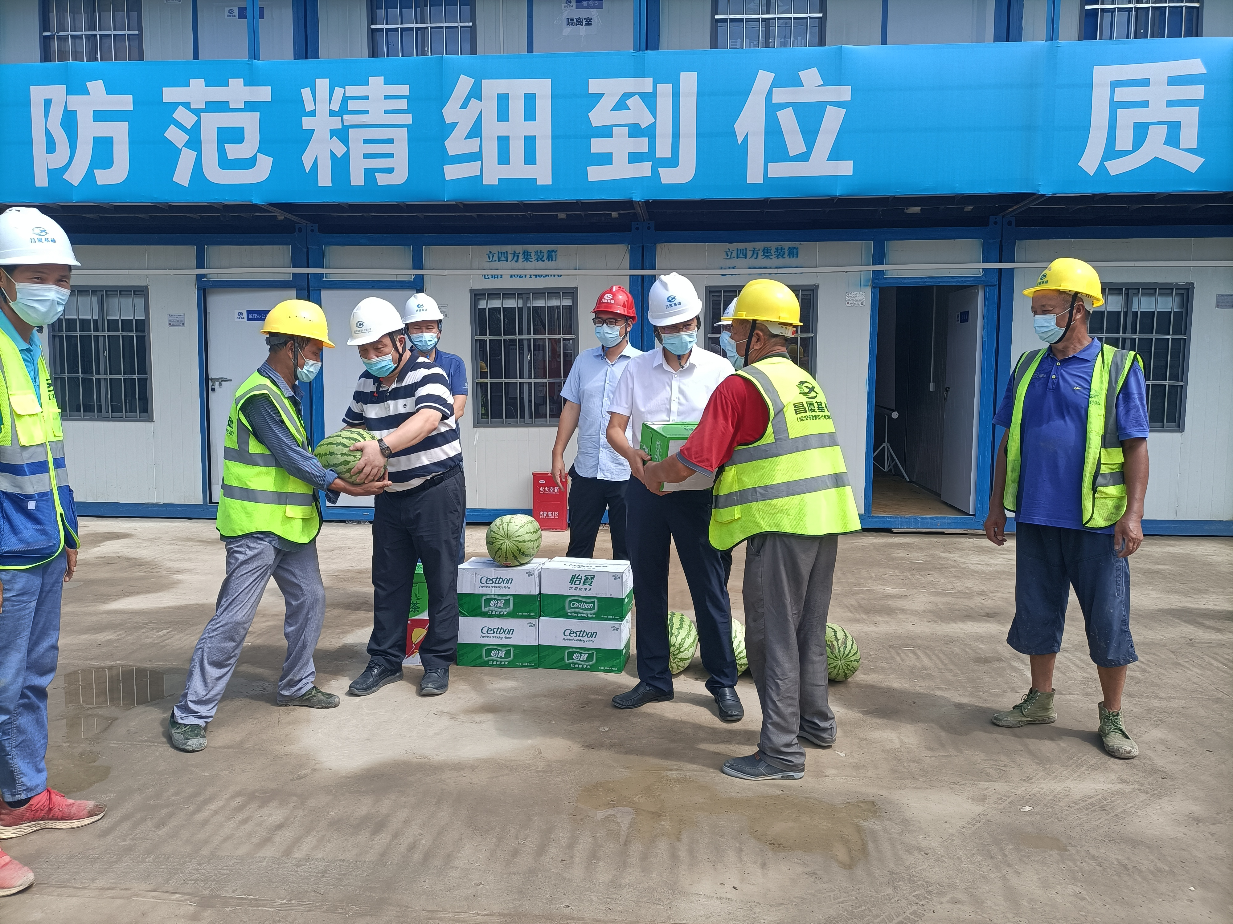 同時,公司領導在項目現場開展了送清涼活動,為一線人員送上礦泉水、西瓜、花露水、藿香正氣水等防暑降溫物資及個人防護用品,并叮囑在高溫堅守崗位的一線職工要注意勞逸結合,做好疫情個人防護,消除各類安全隱患,確保夏季安全生產。(綜合部(黨群工作部)