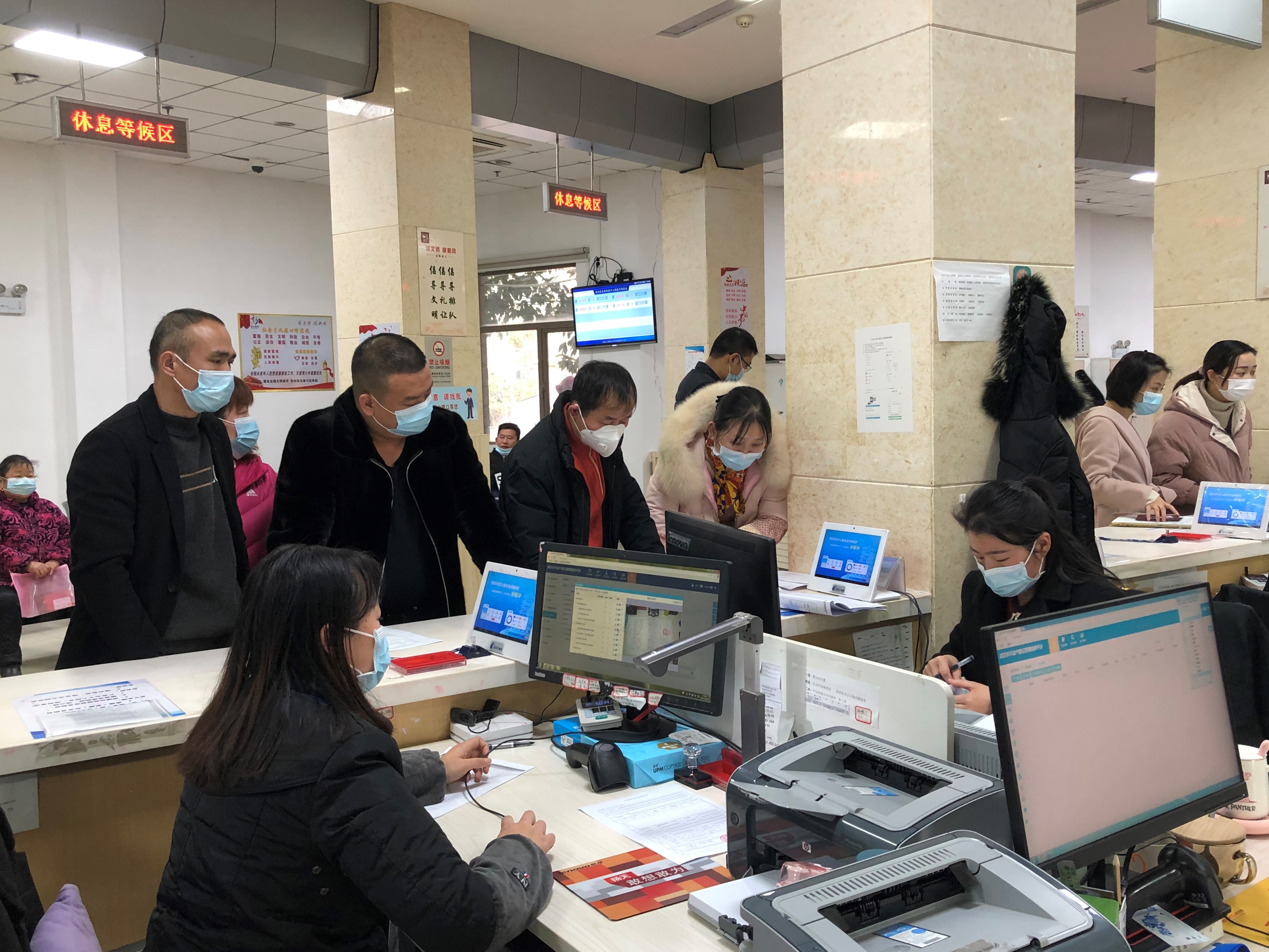 12月29日下午17:00,正值下班時(shí)間,武漢農(nóng)村商業(yè)銀行新洲支行代理人與7戶自然人一道,急迫地來(lái)到新洲區(qū)不動(dòng)產(chǎn)登記中心辦理7個(gè)抵押登記,為武漢慈航優(yōu)撫中西醫(yī)結(jié)合醫(yī)院融資貸款。據(jù)了解,該單位因資金流轉(zhuǎn)不暢,急需不動(dòng)產(chǎn)證明放款,時(shí)間緊迫,恰好7名義務(wù)人能夠全員到齊,所以希望新洲區(qū)不動(dòng)產(chǎn)登記中心能夠給予支持,辦理抵押業(yè)務(wù)。