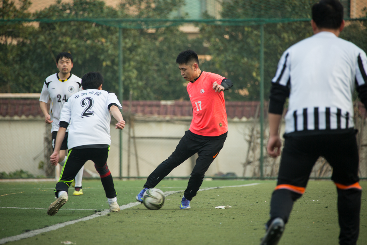 隨著裁判一聲哨響,武漢市測繪研究院黨委書記、院長肖輝為比賽開球,比賽正式開始。本次比賽分三節進行,每節25分鐘。賽場上,隊員們激烈拼搶,盡情發揮球技,搶斷、過人、射門、撲救……精彩場面一個接一個,大家你追我趕,奮力馳騁,經過激烈的角逐,比賽最后在和諧友好的氣氛中圓滿落下帷幕。
